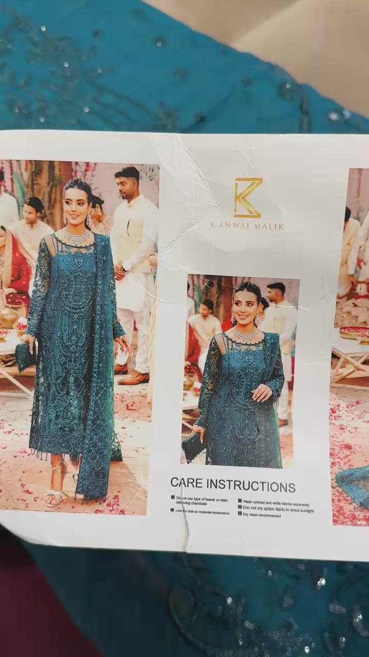 Introducing Riwaj Fabrics' emerald masterpiece: a fully net embroidered shirt adorned with ethnic and hand embellishments. Green sequins detailing adds a touch of glam, while the richly embellished border enhances the luxe look.